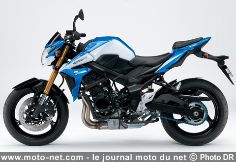 Suzuki présente une nouvelle livrée bicolore de son excellent roadster GSR750 qui s'inspire des traditionnels coloris Racing de la marque (bleu et blanc). Cette GSR750 "SE" adopte aussi des fourreaux anodisés or, des réglages de fourche anodisés rouge, un guidon teinté gris mat, un ressort d'amortisseur rouge et une clinquante chaîne de transmission finale bleue.