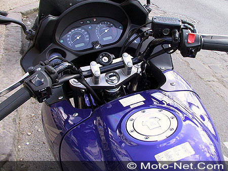 En enfourchant la moto on découvre une nouveauté dans cette catégorie : à l'instar de la Pan European, la position de conduite est adaptable en fonction de la morphologie du conducteur. Ce qui a toujours paru évident dans une voiture ou sur un vélo, à savoir qu'un costaud de 1m90 ne s'assied pas comme une demoiselle de 1m58, commence seulement à être pris en compte sur les motos. On peut donc régler la selle verticalement sur une hauteur de 30 mm et horizontalement sur 10 mm en jouant de la clé BTR fournie (comme chez Ikea !). Ce n'est ni simple ni rapide, mais en principe on ne le fait qu'une fois. Le guidon peut aussi avancer de 10 mm en retournant les supports, une jolie astuce qui ne coûte pas un euro de plus, et la bulle est réglable sur 50 mm. Mais là encore le réglage est fastidieux, ce qui est plus critiquable. Enfin, ne boudons pas notre plaisir, il est vraiment possible de trouver une bonne position d'autant que la selle, bien que dure, est très bien dessinée. En fait ces réglages sont surtout destinés à faciliter la vie des petits gabarits, souvent mal lotis sur les motos modernes.