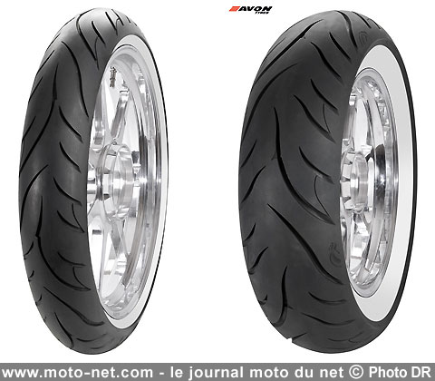 Très recherchés par certains bikers, les pneus à flancs blancs font historiquement appel à une structure diagonale (les nappes à l'intérieur se croisent en se superposant) : Avon est le premier à proposer une version radiale, dont un des principaux avantages est d'être plus flexible et donc plus confortable qu'un pneu diagonal. Un aspect intéressant pour les motos du genre custom, souvent moyennement suspendues.