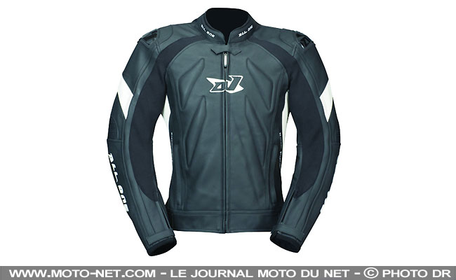 All One (marque Dafy Moto) joue la carte du sport avec son nouveau blouson Spark Evo LT en cuir de vachette dont le look racing est renforcé par une bosse aérodynamique et des renforts plastifiés en bout d'épaules. La protection passe aussi par des coques aux coudes et aux épaules ainsi qu'une dorsale, le tout homologué CE de niveau 1.
