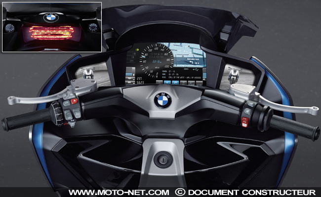 Les premières images du Concept C laissent entendre que les deux futurs scooters BMW proposeront tous les équipements - toutes les options ! - de leurs grandes soeurs routières. Sur les commodos, on distingue nettement les boutons des systèmes ESA et ASC (suspensions à réglage électronique et antipatinage), de la bulle électrique, des poignées et selles chauffantes.