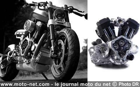 Développée en collaboration avec le motoriste américain S&S, cette cathédrale mécanique adopte un angle de 56° entre ces deux monstrueuses gamelles (1081,5 c chacune !) qu'alimente une injection électronique.