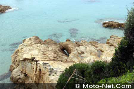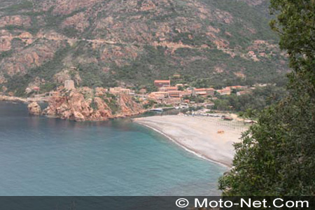 La route jusqu'à Piana est agréable malgré la circulation parfois un peu dense. C'est à Piana que nous attend un morceau de choix : les Calanches de Piana ! Une dizaine de kilomètres de route en corniche, taillée au milieu des roches jaune ocre. Les vues sur le golfe de Porto sont tout simplement superbes et pour en profiter pleinement, une seule solution : descendre en roue libre, moteur coupé, l'appareil photo prêt à déclencher. Pendant la descente vers Porto, il y a de quoi s'arrêter tous les 100 m pour s'en mettre plein les yeux !