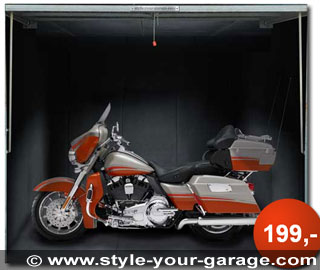 Pour 259 euros, il est également possible de transmettre en ligne sur le site la photo de son choix - votre collection idéale de motos ? - pour recevoir la bâche adhésive prête à poser. Et la société allemande ne compte pas en rester là, puisqu'elle devrait bientôt proposer des décorations du même style pour portes et fenêtres...