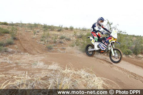 Grâce à cet état d'esprit de "gagnant", l'officiel KTM n°2 va même pousser son avantage sur le leader à plus de 2'30 au km 240. Peut-être le français avait-il en tête la mésaventure du catalan, qui avait craqué alors qu'il menait la course en 2007, heurtant un arbre du côté de Tambacounda à deux jours du terme du rallye ?