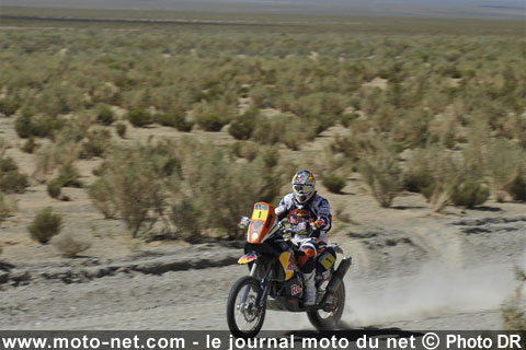 Assez longue (417 km, dont 218 km de spéciale), cette étape a emmené les motards à des altitudes extrêmement élevées (+ de 3500 mètres), ce qui a "écrémé" le peloton. Contre toute attente, le tenant du titre Cyril Despres ne fut pas au rendez-vous : le Français, victime de problèmes de boite de vitesses (5ème récalcitrante), ne termine la journée qu'à la 34ème position, à 13min08 du vainqueur.