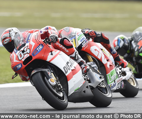 Il est vrai que le britannique peut légitimement nourrir des regrets dans la mesure où il avait totalement dominé Dovizioso à monte pneumatique égale, alors que son coéquipier utilisait la nouvelle version de la Ducati, la GP14.2, plus facile à piloter grâce notamment à une meilleure répartition des masses et un affinage au niveau du réservoir obtenus par le biais de culasses plus étroites...