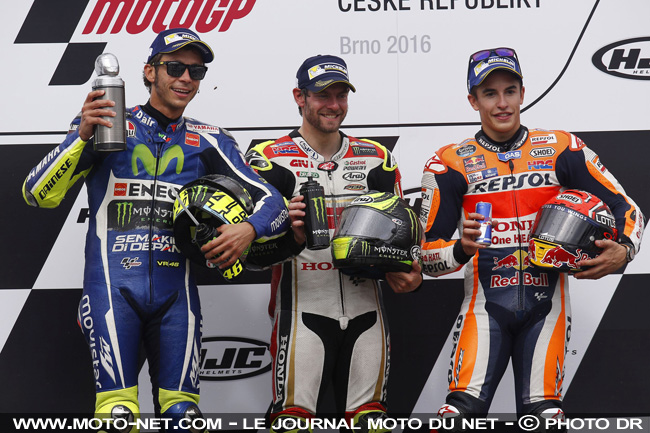 Contrairement à son coéquipier Lorenzo et aux pilotes d'usine Ducati, Dovizioso et Iannone, Rossi a néanmoins réussi à terminer correctement - terminer "tout court" ! - la difficile épreuve tchèque. Paradoxalement, le fait que son pneu arrière tracte mal en début de course n'a pas accéléré l'usure de son pneu avant...