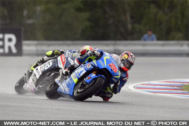 Maverick Viñales, Suzuki Ecstar (8ème aux qualifs, 9ème en course) : "On a probablement fait le mauvais choix de pneus. On a commencé avec le tendre en pensant que la piste sécherait beaucoup plus vite et faire une course "flag-to-flag", mais finalement ça ne s'est pas produit et les performances ont considérablement chuté. Je suis quand même content, car si on regarde le classement de ceux qui avaient le pneu tendre, on est troisièmes. En outre, on a pu faire de gros progrès".