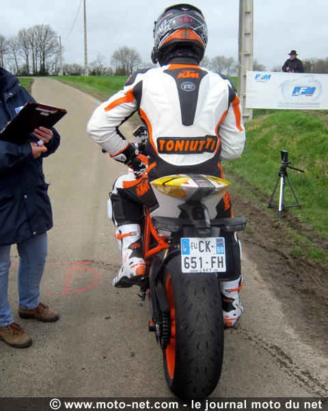 Le pilote du CMPN obtient le meilleur temps en 1' 38,21, six dixièmes devant l'enfant du pays, Florent Derrien au guidon de sa KTM 690 SM. Troisième temps pour le spécialiste en gestion (au moins pour celle de son avance prise sur le Bugatti) et officiel KTM France Julien Toniutti et sa KTM RC8 de bûcheron en 1' 40,27.
