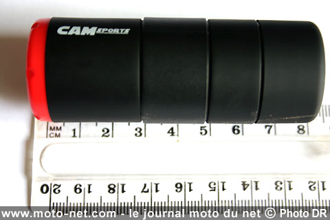 Avec son gabarit proche de celui d'un tube de colle (80 mm de long et 30 mm de diamètre) et son poids léger de 69 grammes, la Camsports HD-S 720P possède l'avantage d'être compacte et facile à transporter. Un premier point très positif pour les "réalisateurs-motards" !
