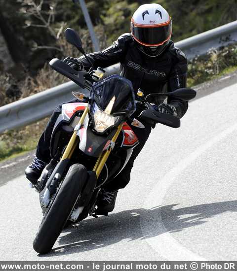 Les à-coups d'injection encore perceptibles importent peu lorsqu'on cherche à exploiter le potentiel de l'Aprilia. On se félicite même du caractère "On-Off" du moteur en version "Sport" ! De même, la sélection un peu dure en ville n'empêche pas de monter et descendre les rapports sans recourir à l'embrayage.