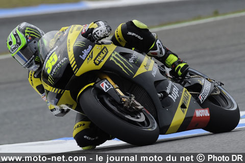 Brillant huitième en course, le rookie Cal Crutchlow a confirmé sa montée en puissance au guidon de la Yamaha Tech 3 en signant le quatrième chrono de cette séance d'essais en 1'36.850 : récemment opéré du syndrome des loges, le véloce Britannique semble avoir bien saisi le mode d'emploi de son YZR-M1 satellite !