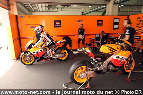Les modifications apportées sur la Honda RC212V (nouvelle fourche testée par Dovizioso et Simoncelli, nouveau châssis et moteur testés par Pedrosa et Stoner) semblent donc porter leurs fruits, puisque Dovizioso (HRC), Simoncelli (Gresini) et Aoyama (Gresini) se placent dans le Top 6, juste devant la Yamaha YZF-M1 de Lorenzo (2'01563) !
