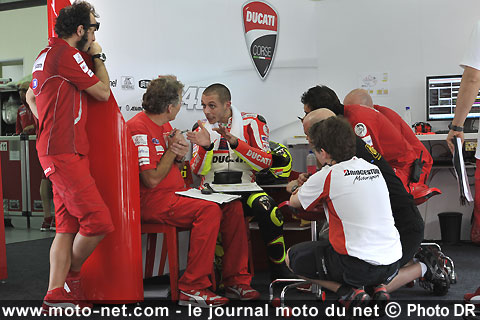 Dans le team officiel Ducati, on s'efforce de garder le sourire... mais avec un tel écart sur les chronos des leaders, la question est de savoir dans quelle mesure les informations remontées par Rossi pendant ce test de trois jours vont se révéler pertinentes. Avec des prototypes aussi sophistiqués et pointus que les machines de Moto GP, chaque modification ou nouvelles pièces ne peuvent être validées qu'en poussant l'ensemble du package dans ses derniers retranchements. Malheureusement, le Docteur en est actuellement incapable...