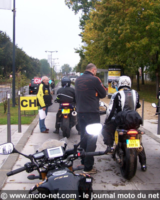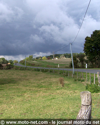 Après les pluies diluviennes de cette nuit, l'ensemble du paddock du Dark Dog Moto Tour 2010 s'attendait à du mouillé en quittant Val-de-Reuil ce matin... Mais la route était sèche et le parcours tranquille, jusqu'à Magny-Cours où un vilain nuage noir menaçait au dessus du circuit !
