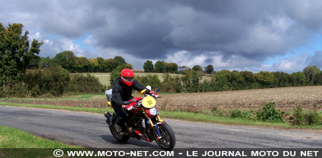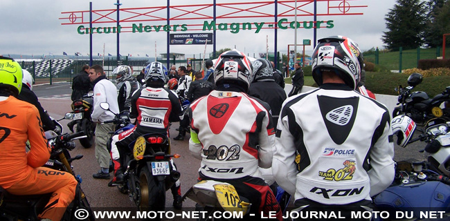 La base chrono d'environ 2 km est remportée par Manoel Delaval, avant un arrêt au CH à midi histoire de se ravitailler en essence et en sandwiches. Et c'est l'arrivée au grandissime circuit de Magny-Cours sur un bitume de plus en plus humide.