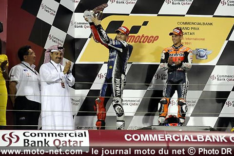 Analyse Moto-Net.Com : A le voir gesticuler et haranguer son équipe sur le podium, on aurait pu penser que le vainqueur de la première course de la saison 2011 était Jorge Lorenzo ! Il est vrai que le champion du monde en titre nourrissait quelques inquiétudes avant le départ, tant la piste qatarie mettait en avant la supériorité des RC212V particulièrement véloces et équilibrées...