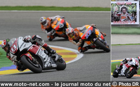 Chargé d'émotions, ce Grand Prix de Valence 2011 a aussi été l'occasion de rendre un ultime et bruyant hommage à Marco Simoncelli, le pilote Honda-Gresini fauché en pleine ascension dans sa 24ème année lors du GP de Malaisie disputé le 23 octobre (lire MNC du 6 novembre 2011 : l'adieu à Marco Simoncelli)...