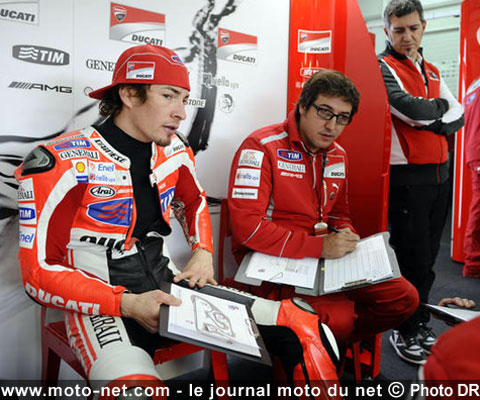 Actuellement en négociations avec Suzuki et Honda-LCR pour tenter de conserver un guidon en Moto GP en 2012, Randy de Puniet s'est lui aussi cassé les dents sur la Ducati, une moto qu'il était pourtant impatient d'essayer fin 2010. Sûr qu'en ce moment, le n°14 doit plutôt rêver de retrouver la relative "docilité" d'une Honda, mais aussi le professionnalisme d'un team comme celui de Lucio Cecchinello...