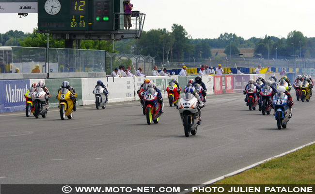 Jules Danilo prend l'avantage devant Grégory di Carlo et Jordan Lévy qui ont déjà creusé un petit écart, mais la safety car rentre en piste au troisième tour suite à un accident impliquant trois motos.