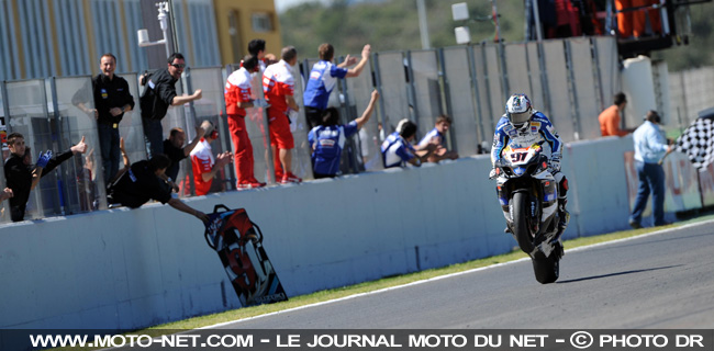 Dans le dernier tour, Leon Haslam se contente de dérouler et contrôle de près l'ultime charge de Max Biaggi. L'anglais se retourne dans les dernières courbes et peut signer sa 2ème victoire de la saison par un superbe wheeling.