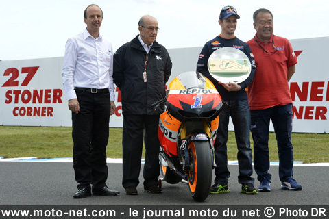 Dès le premier jour où Casey est venu rouler pour Repsol Honda, presque chaque jour, il est arrivé avec quelque chose de nouveau qui nous a étonnés. Je ne connais pas d'autre coureur avec qui il est plus plaisant de travailler. J'espère qu'il se remettra rapidement de sa blessure, et si il lui prenait l'envie de revenir, il trouvera toujours un accueil chaleureux. Je lui ai dit que l'offre tenait toujours.