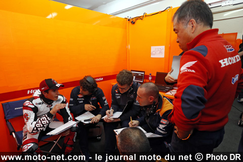 S. N. :Eh bien, je ne sais pas s'il a vraiment dit ça ou pas, mais Marc a le même genre d'énergie que Casey et nous nourrissons de grands espoirs en lui. Il a participé à quatre jours d'essais, un à Valence et trois à Sepang. Le temps était médiocre sur l'ensemble de ces journées et il n'avait vraiment pas beaucoup de temps pour nous montrer comment il pouvait rouler, et malgré cela à Sepang, il a tourné en 2'01 très régulièrement. Ce temps est à peu près le même que ceux de Casey et Dani, mais Marc n'arrêtait pas de nous abreuver de commentaires tels que "J'ai besoin de maintenir l'avantage dans ce virage de manière à éviter de tomber". Commentaires qu'il notait soigneusement afin que de les mémoriser. Je n'étais pas là aux essais en Malaisie, mais j'ai entendu notre équipe en parler et j'ai été très surpris. Je n'ai jamais rencontré un coureur qui agit comme ça.