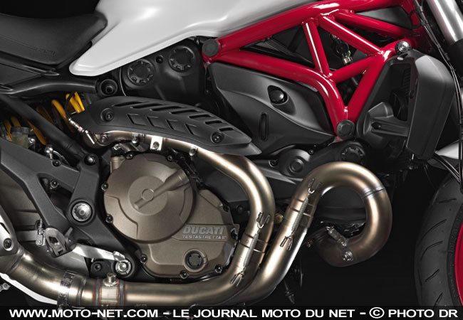 Ducati ne donne pas davantage de détails quant au travail réalisé sur le Testastretta 11°, mais signale que sa fougue sera canalisable via un anti-patinage réglable sur 8 niveaux et trois cartographies d'injection différentes.
