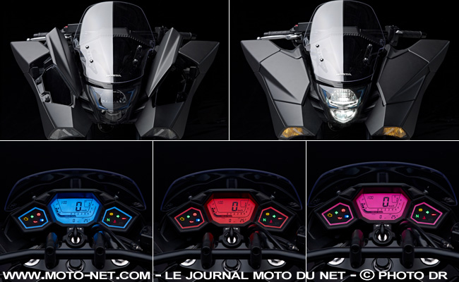 Au-delà de son look inspiré de la "Japanimation" - dixit Honda - et ses dimensions généreuses (933 mm annoncés aux rétros !), la NM4 Vultus surprend par certains détails particulièrement "chiadés". Les jeunes ingénieurs sollicités pour le projet - âgés de 20 à 30 ans - ont tout d'abord décidé de ne recourir qu'aux diodes pour assurer l'éclairage, à l'avant comme à l'arrière.