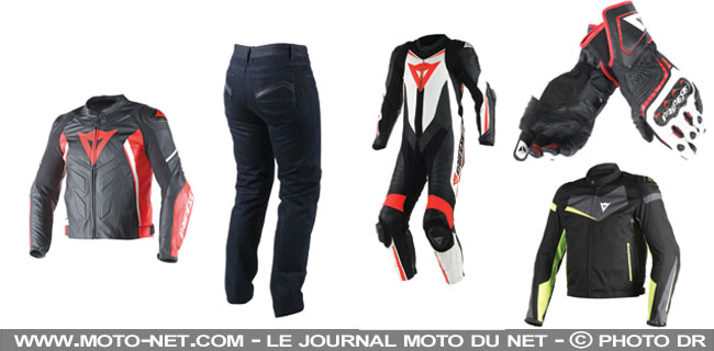 Dainese profite des grands rendez-vous de la moto que sont l'EICMA de Milan et le salon de Paris pour dévoiler ses nouvelles collections 2016. Comme d'habitude avec le leader mondial de l'équipement moto, le sport est à l'honneur avec notamment le blouson en cuir Avro D1 en cuir bovin (499,95 €), les gants D1 en cuir de chèvre et de mouton avec renforts carbone (149,95 €) ou la combinaison de piste Laguna Seca D1 avec coques en aluminium sur les épaules (999,95 €).