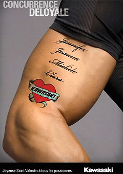 Souvent perçu comme le plus "déluré" des quatre constructeurs de l'archipel japonais, Kawasaki ne déroge pas à sa réputation avec cette carte de voeux décalée à l'occasion de la Saint Valentin, cette pseudo fête des amoureux faisant surtout le bonheur des fleuristes, restaurateurs, tour operators, hôteliers, bijoutiers, sans oublier les fabricants de préservatifs...