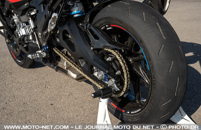 Sa monstrueuse puissance provient du 4-cylindres à distribution variable de la dernière génération de S1000RR : le trail ne rend que 9 petits canassons à la méchante Superbike de 210 ch. Bestiale, la M 1000 RR mise tout sur la performance brute : en témoignent ses crêtes de puissance et de couple perchés à 12 750 tr/mn et 11 000 tr/mn. MNC note aussi que son couple est un zest inférieur à la S1000 XR : 113 Nm contre 114 Nm. Les motoristes compensent avec une plus grosse couronne (47 dents contre 45) et des rapports supérieurs plus courts, pour booster ses relances.