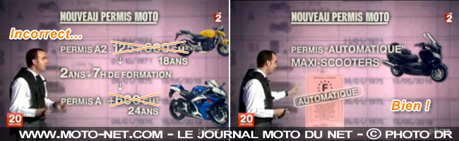 Même le Journal de 20 Heures de France 2 l'a évoqué hier soir : le nouveau permis moto entrera en vigueur le 19 janvier 2013. Les lecteurs de Moto-Net.Com - qui , comme chacun sait, ont un peu plus de chance que les autres - savent déjà tout sur ce sujet (lire MNC du 21 novembre 2011 : le point sur le nouveau permis moto de 2013) et auront donc noté une erreur dans le discours du journaliste...