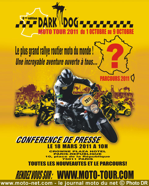 Les organisateurs du Dark Dog Moto Tour ont prévu de divulguer le parcours de l'édition 2011 à l'occasion d'une grande conférence ouverte à tous. Elle se tiendra dans un mois à Paris... A vos agendas !