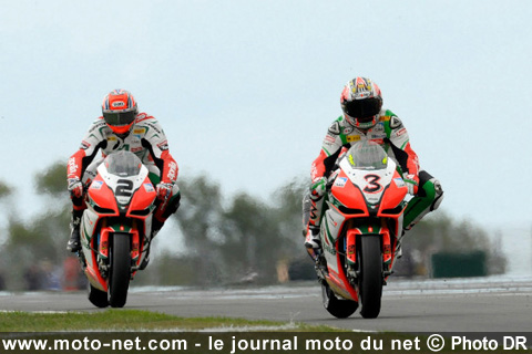Ainsi, le n°2 d'Aprilia espère remonter sur sa RSV4 Factory pour la grande finale du championnat du monde qui se déroulera dans une semaine à Magny-Cours. D'ici là, son coéquipier Max Biaggi aura peut-être troqué son n°3 contre un n°1 ? Ce week-end, il est en effet très probable que Max Biaggi s'empare de sa cinquième couronne mondiale...
