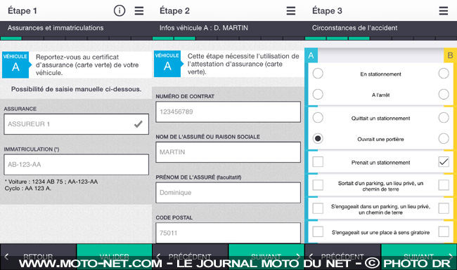 Le principe demeure très simple : permettre à un automobiliste ou un motard victime d'un accident - matériel uniquement - de remplir à l'aide de son téléphone portable un constat amiable qui sera immédiatement envoyé à son assureur par e-mail sous format PDF (l'assuré en reçoit une copie à conserver).