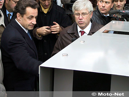 Bretelle d'accès fermée "sauf officiels", déploiement de flics sur les ponts et gardes du corps en protection rapprochée : Nicolas Sarkozy (ministre de l'intérieur), Gilles de Robien (ministre des transports), Rémy Heitz (délégué interministériel à la Sécurité routière) et toute une brochette d'officiels inauguraient devant la presse - et les automobilistes bloqués dans les bouchons - le premier radar automatique (lire Moto-Net du 22 octobre 2003).