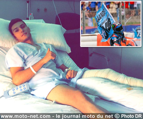 De la première marche du podium à un lit d'hôpital, il n'y a parfois qu'un pas pour les pilotes moto : c'est le cas du jeune espagnol Jorge Navarro, méchamment blessé à la jambe gauche lors d'un entraînement en supermotard moins d'une semaine après avoir fêté sa toute première victoire en Grands Prix, remportée sur sa Moto3 Honda en Catalogne...