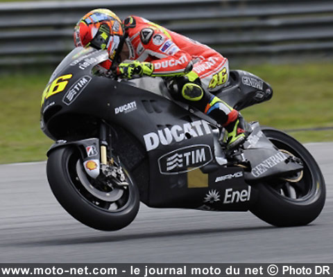 Valentino Rossi - Ducati - 5ème le mercredi en 2'00.824 : "Toute l'équipe est très contente de la façon dont s'est déroulé le test, notamment aujourd'hui. Avec un chrono de 2'00.8, nous commençons à avoir des temps corrects. Les deux Honda et les deux Yamaha sont toujours devant nous, mais nous devons considérer ce test comme un point de départ".