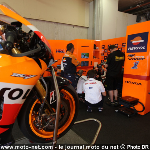 Stoner n'a que quelques heures pour récupérer pleinement ses esprits et disputer à ses rivaux la pole position lors de la séance qualif' de cet après-midi. Le mieux placé pour le moment est Dani Pedrosa, auteur d'un impressionnant chrono malgré les conditions piégeuses : 1'34.522.