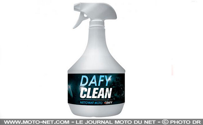 Grâce à sa texture qui ne coulerait pas, le nettoyant pour moto et scooter Dafy Clean agit " précisément et efficacement ", assure Dafy Moto qui commercialise ce produit d'entretien sous forme de pulvérisateur d'une contenance d'un litre au prix de 10,90 €.