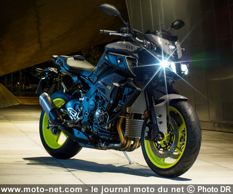 Impossible pour l'instant d'être renseigné sur ce point, puisque Yamaha n'a pas communiqué toutes les données techniques de sa nouvelle MT-10, notamment ses performances et ses dimensions précises. On sait en revanche qu'elle sera disponible en mai 2016 dans le coloris flashy "Night fluo" avec jantes en jaune fluo (plus besoin de gilet haute visibilité !), en noir "Tech Black" et en bleu "Race Blu", désormais classique dans le nuancier Yamaha.