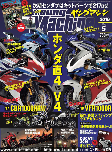 D'après nos confrères de Young Machine toutefois, Yamaha serait prêt à relever le défi : une R6 inédite se trouve en effet en une du journal japonais, en face de la prochaine GSX-R1000 "de 205 chevaux !" et juste derrière les hypothétiques CBR1000RRW et VFR1000R...