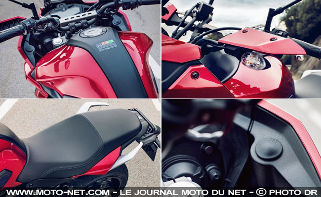 Espérons qu'une attention particulière aura été apportée au mono-amortisseur de 130 mm de débattement (ajustable en précharge), parfois joyeusement "chahuté" par les grosses contraintes sur la MT-07…