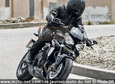 Pour contrer l'offensive menée par la MT-09, Triumph s'apprête à booster sa Street Triple de 675 à 800cc. Cette nouvelle moto 2017 se déclinera en outre en quatre versions plus ou moins équipées : standard et R comme actuellement, mais aussi RT et RS qui nourrissent des ambitions routières. La première photo volée de cette moto circule déjà sur le web...