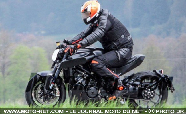 Depuis son rachat par KTM, Husqvarna présente régulièrement des concepts à partir des motos Oranges, comme les élégantes néo-rétros Vitpilen attendues pour 2017. C'est maintenant au tour du radical roadster Super Duke R (173 ch !) de passer aux couleurs d'Husky avec un arrière tronqué et un garde-boue déporté façon Diavel, ainsi qu'un nouvel habillage et des demi-guidons étroits et visuellement assez bas selon des photos "volées" publiées par nos confrères de MCN.