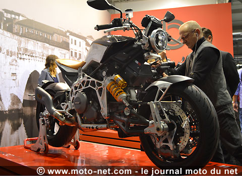 Le petit - mais très inspiré - constructeur italien Bimota répond comme d'habitude présent pour "son" salon de la moto à Milan avec deux intéressantes nouveautés : le Café racer Tesi 3D RaceCafe et le roadster Impeto à moteur de Diavel, avec compresseur en option !