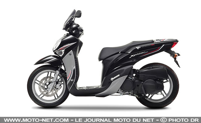 Décliné en 125 cc et 150 cc (en France, seul le 125 sera importé), le "Xenter MotoGP" se reconnaît à son pare-brise fumé, à son habillage de porte-bagages plus sportif et à ses décorations "MotoGP".