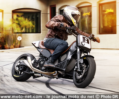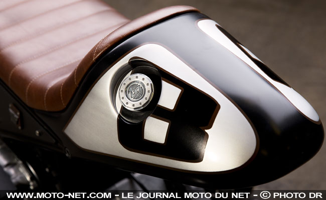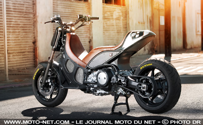 Fruit de quatre semaines de labeur, il embarque un garde-boue avant construit à partir de celui d'une R6, des grilles à travers lesquelles on aperçoit le nerveux bicylindre, un guidon cross et une plaque-numéro avec un mini phare en guise d'optique.